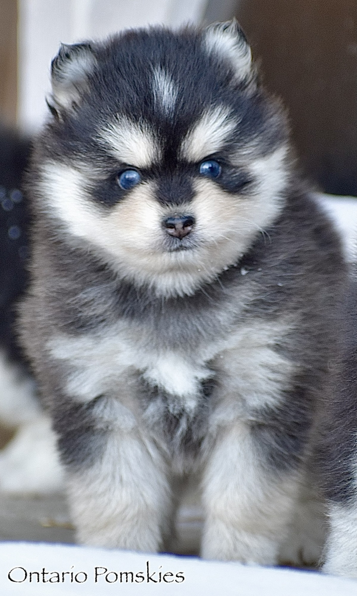 Our super popular home-bred girl, Ontario Pomskies Jubilee, is our adorable toy Pomsky weighing only 9.4 pounds. She was featured by Google as a Top Image result for “Pomsky” keyword searches, while our other home-bred toy Pomsky, Senali, was featured by Google as a Top Image result for “Arctic Spitz” keyword searches.