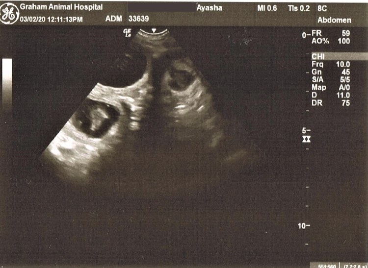 Eno and Ayasha’s litter is CONFIRMED! We are soooo excited to announce that Ayasha has been confirmed pregnant with at least 4 fetuses and the vet did not notice any fetal resorption! We are over the moon excited for these puppies.
