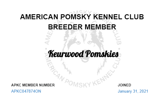 We are also super honoured and excited to be the first Internationally-approved breeder for the American Pomsky Kennel Club! We cannot wait to see our new litters’ registration papers that will also display their pedigrees!
