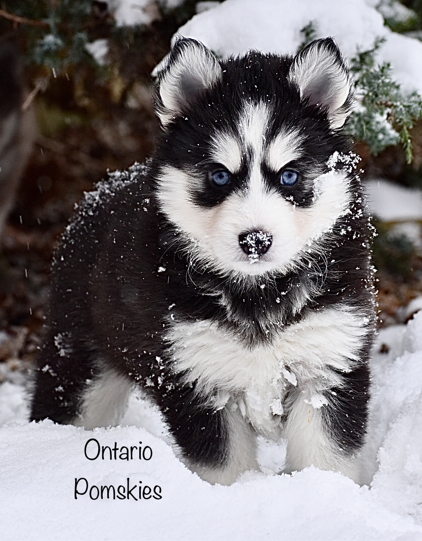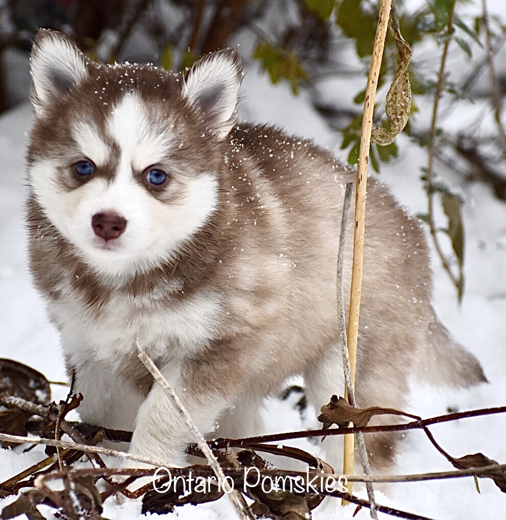 Our F3 Pomsky Fall litter turned 7 weeks old yesterday and they have all found their furever families! These playful pups have been learning “sit” this past week and they’re all doing super! One more week with these precious pups before they meet their new pawrents just in time for the holidays! We took extra photos of these gorgeous pups enjoying the snow.