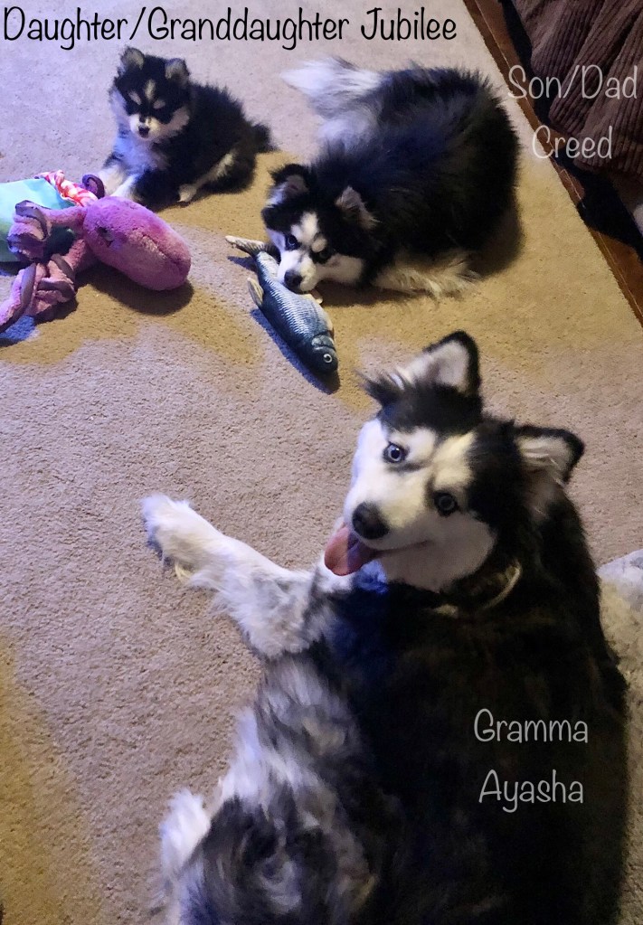 Our Ti-Rax (Tiva x Brax) F4 Pomsky litter turned 8 weeks old on Sunday, March 13. They all got a clean bill of health from their vet visit.