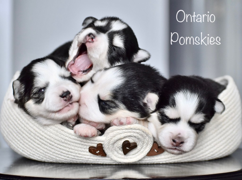 Our ten (10) adorable Pomsky puppies from 2 litters are now 2 weeks old!
