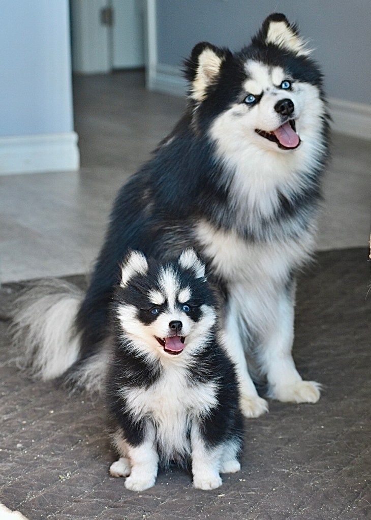 Next update…. We have successfully bred Akela, our 16 pound stunning silver Pomsky girlie, with Scenic City Pomskies’ 10 pound beautiful blue boy, Banjo!