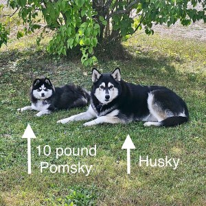 Pomskies can vary in size due to the random genetic shuffle of both Pomeranian and Siberian Husky genes.