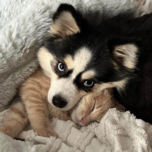 Pomskies typically thrive in a pack that can consist of adults, children and elderly people, other dogs, cats, or other animals with which they can interact. Early introduction to all members of their pack is crucial to successful integration and acceptance.