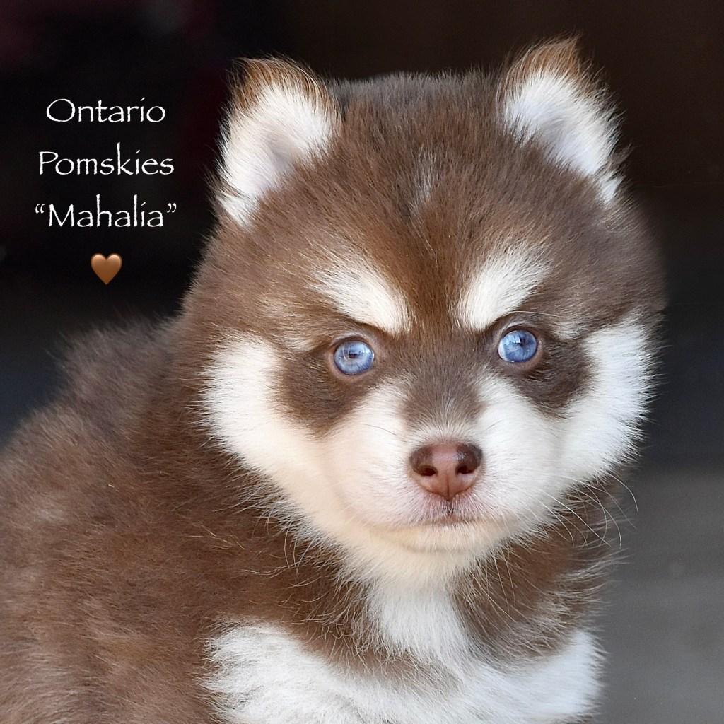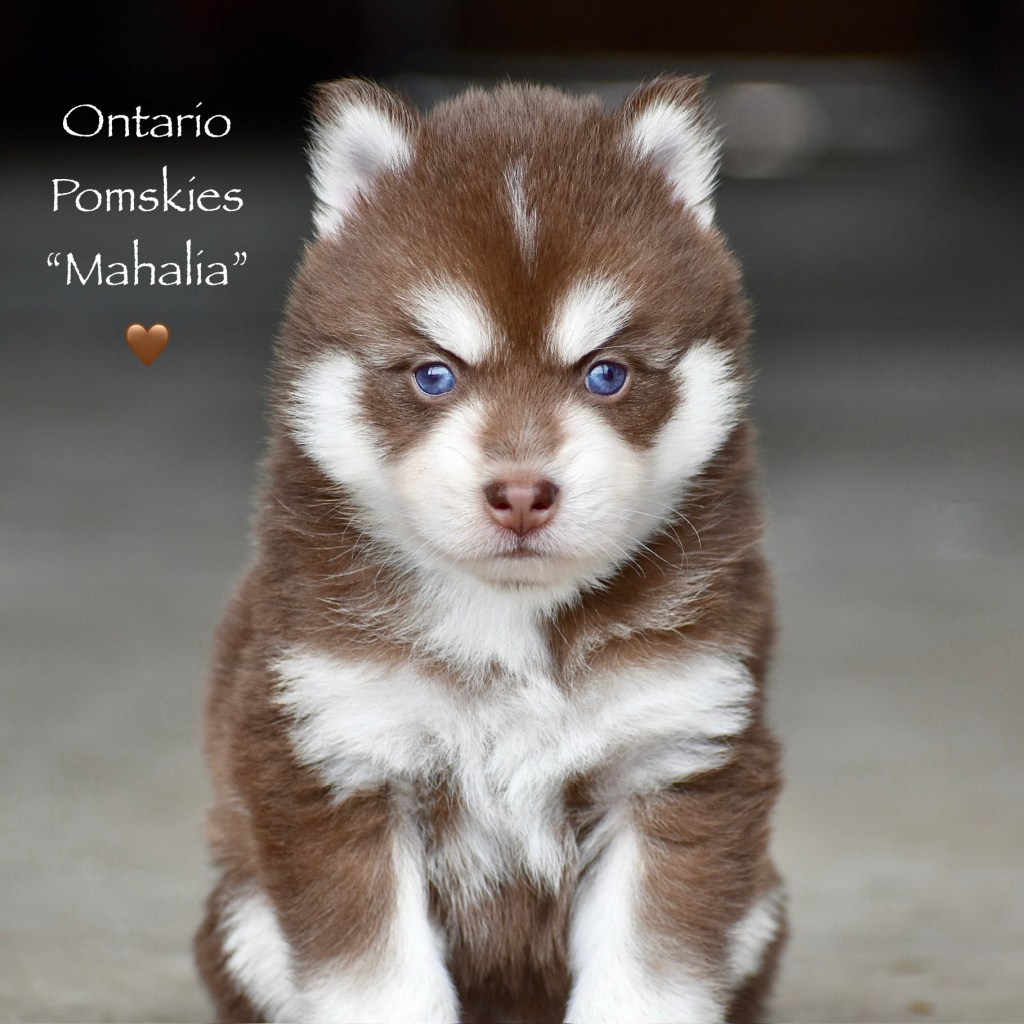 Leilani (20 pounds) silver F3 x Creed (16 pounds) black F3. F4 Pomsky puppies anticipated for August/September 2026. Coat colour options: black, grey/silver, red/brown. Eye colour options: Blue. Size options: Mini to Standard.