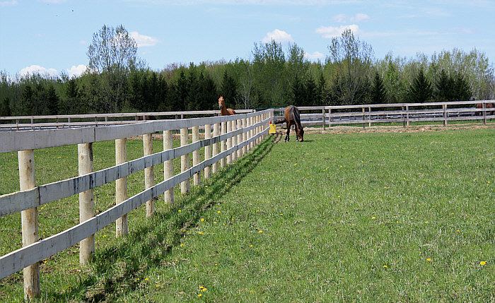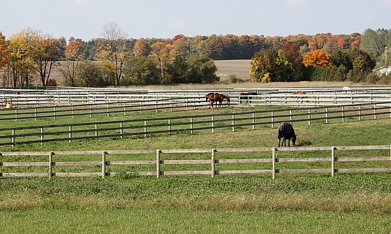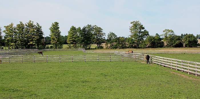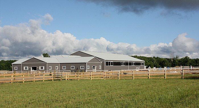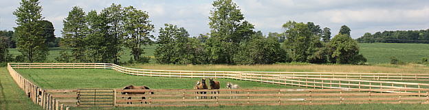 120’x200′ outdoor fibre footing sand ring, ring-side patio, large individual and group paddocks, oak board rails, inclement paddocks automatic waterers, shelters, trails